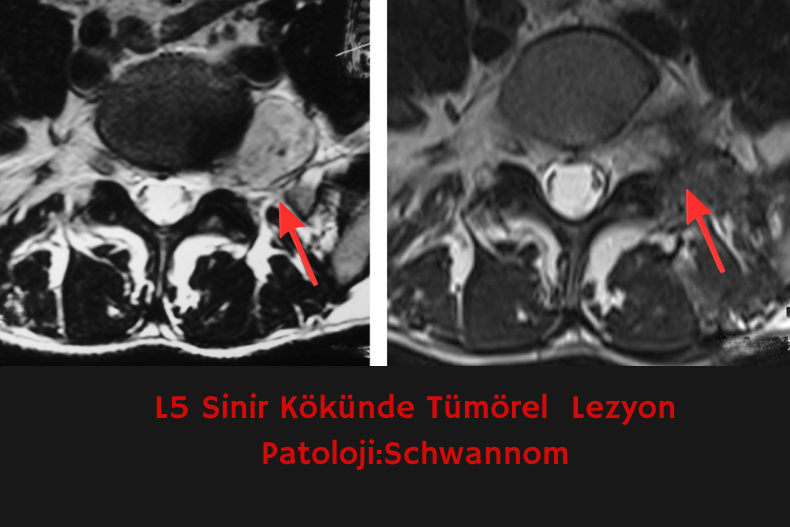 Belirti ve tanı: Radyopatik ağrı, yani sinir kökü boyunca uzanan keskin, yanıcı ağrı en tipik şikayettir. MRI (manyetik rezonans görüntüleme) tanıda vazgeçilmezdir; gadolinyum kontrastlı çekimlerde schwannomlar homojen kontrastlanma gösterir.